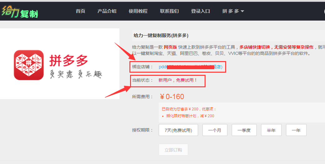 点击“确认授权”后,如下图所示,则说明授权登陆成功,可以开始免费使用或订购了!